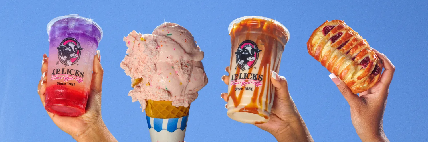 Founded by Vincent Petryk in 1981, J.P. Licks serves ice cream, hard yogurt, soft serve, plus dairy free, gluten free, and vegan ice cream that can be made into sundaes, frappes, and cakes for any occasion! We have a full espresso bar and serve fresh baked goods daily. Certified Kosher.